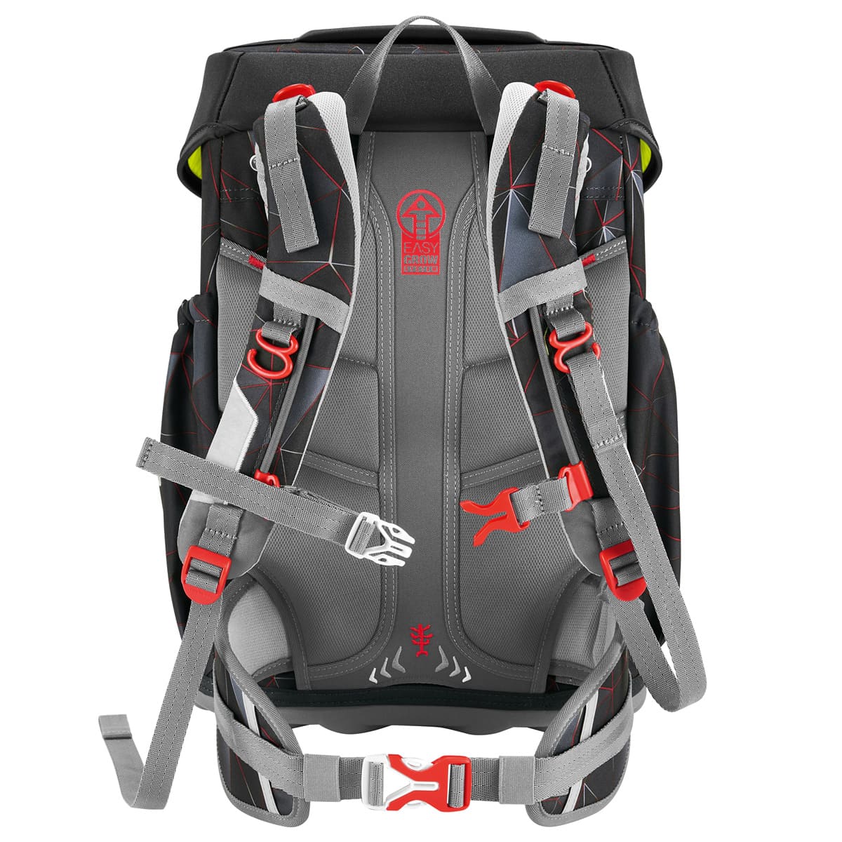 durch das patentierte Easy Grow System kann mit einem Drehgriff im Inneren des Giant die Höhe der Schulträger und damit die Rückenlänge des Ranzen unkompliziert und individuell angepaßt werden. Der Giant kann von einem besondes groß gewachsenen Schulkind getragen werden.