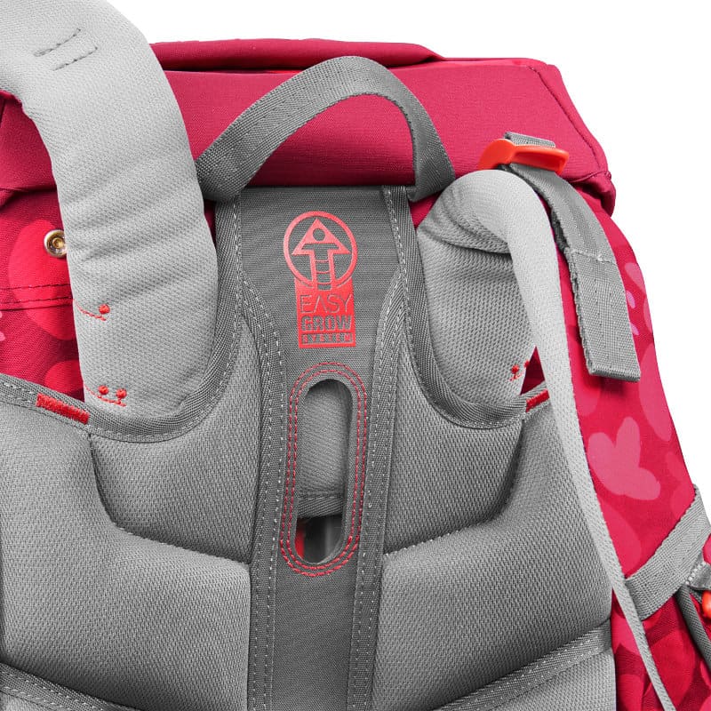durch das patentierte Easy Grow System kann mit einem Drehgriff im Inneren des Giant die Höhe der Schulträger und damit die Rückenlänge des Ranzen unkompliziert und individuell angepaßt werden. Der Giant kann von einem besondes groß gewachsenen Schulkind getragen werden.