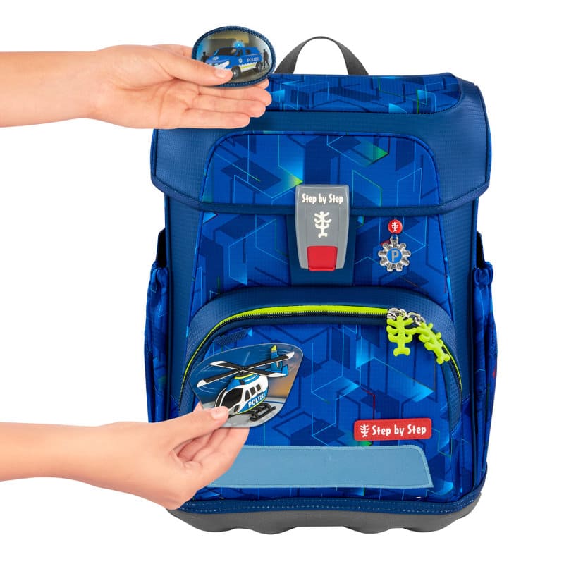 Diese wunderbaren Motive sind detailverliebt ausgearbeitet. Mit ihnen läßt sich der Step by Step Ranzen jeden Tag spielerisch neugestalten. Durch Magnete, die in der Fronttasche und dem Deckel eingearbeitet sind, halten die MAGIC MAGS magnetisch. Die Magnetkraft ist ausreichend groß, daß die MAGICMAGS auf dem  Ranzen alles mit dem Schulkind erleben können.