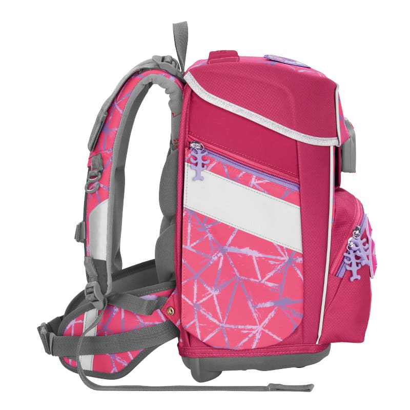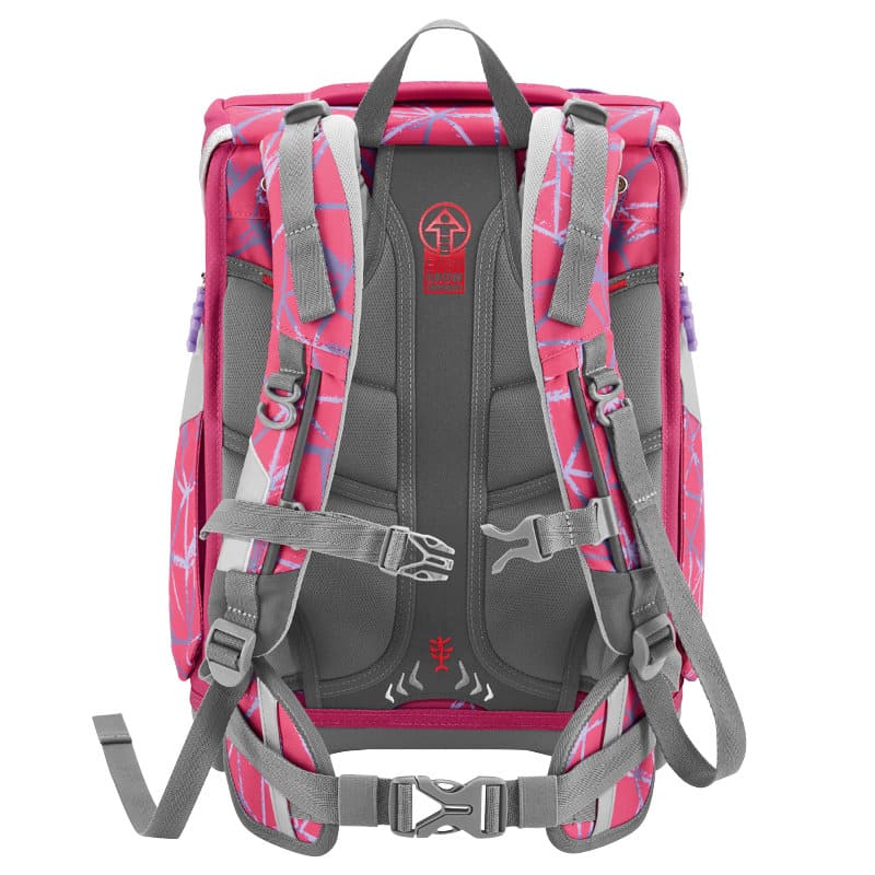 Der höhenverstellbare, abnehmbare Brustgurt und der abnehmbare Hüftgurt helfen das Gewicht von den Schultern auf den ganzen Körper zu verteilen. Die Lageverstellriemen sorgen für eine zentrale Platzierung auf dem Rücken. Der Ranzen läßt durch seine Gurte und die optimale Einstellung perfekt zum Bus sprinten. Ranzen auf, Gurte nachziehen und auf geht`s.
