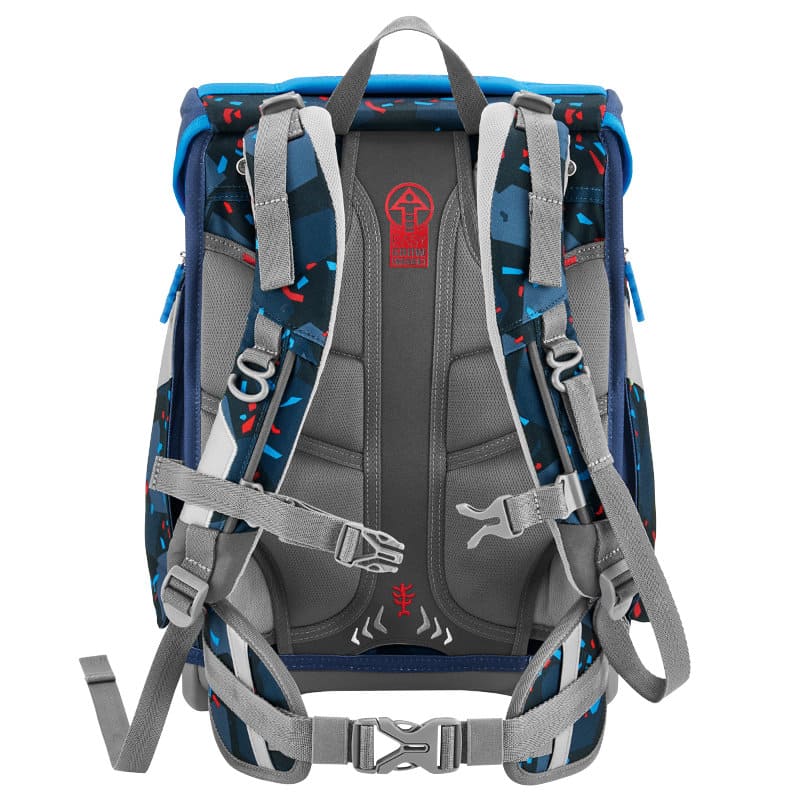 Der höhenverstellbare, abnehmbare Brustgurt und der abnehmbare Hüftgurt helfen das Gewicht von den Schultern auf den ganzen Körper zu verteilen. Die Lageverstellriemen sorgen für eine zentrale Platzierung auf dem Rücken. Der Ranzen läßt durch seine Gurte und die optimale Einstellung perfekt zum Bus sprinten. Ranzen auf, Gurte nachziehen und auf geht`s.
