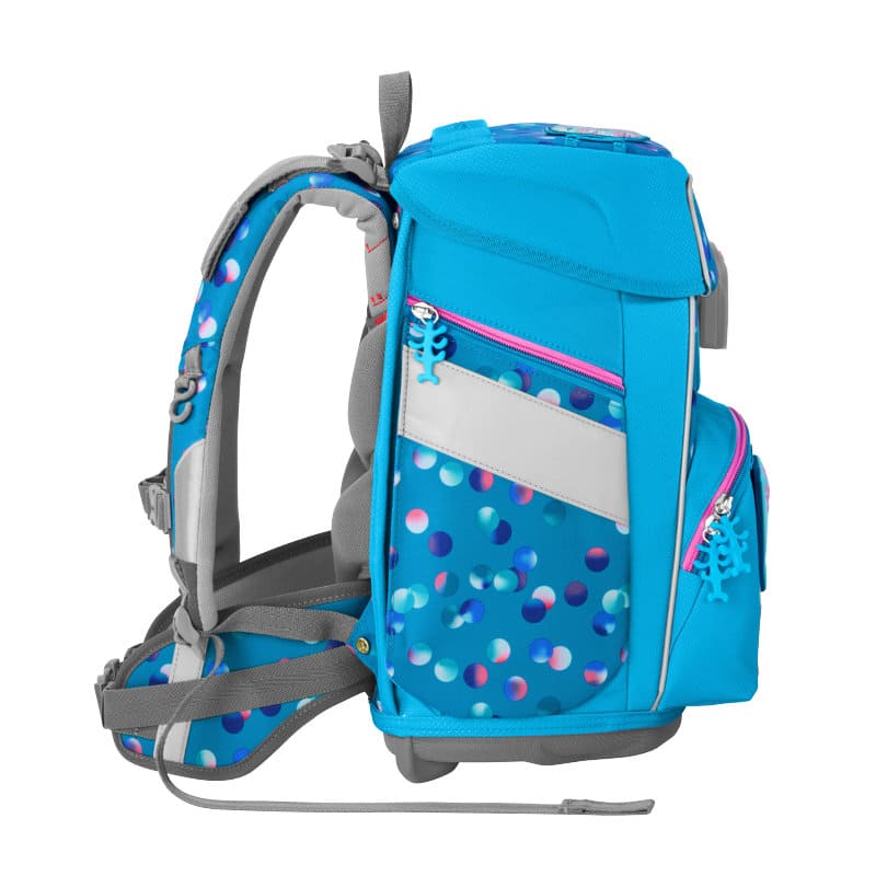 Der höhenverstellbare, abnehmbare Brustgurt und der abnehmbare Hüftgurt helfen das Gewicht von den Schultern auf den ganzen Körper zu verteilen. Die Lageverstellriemen sorgen für eine zentrale Platzierung auf dem Rücken. Der Ranzen läßt durch seine Gurte und die optimale Einstellung perfekt zum Bus sprinten. Ranzen auf, Gurte nachziehen und auf geht`s.