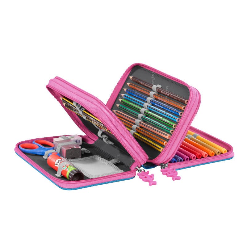 mit seinen 3 geräumigen Fächern beinhaltet alles, was das Schulkind zum Schreiben, Zeichnen, Malen und sogar Basteln braucht.